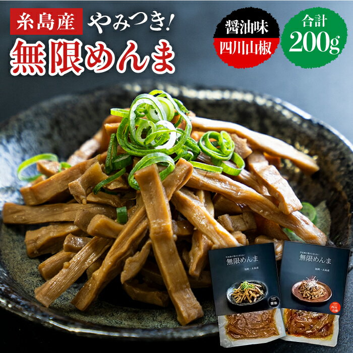 やみつき!無限めんま 100g×2種 食べ比べセット 醤油味&四川山椒味【レストランITOSHIMA by Salute】