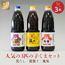 店主自らが工夫を凝らした自慢の醤油を取り揃えています。食卓を彩るお料理の隠し味に,ぜひ一度お試しください。【ふるさと納税】熊井醤油 人気の3匹の子ぐま(黒だし、醤熊す、風味)セット 各1リットル【熊本県宇土市】