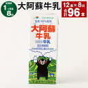 太陽と緑にめぐまれた酪農地帯「熊本」。 その豊かな自然の中で育まれた乳牛からまごころ込めて搾った生乳をパック詰めしたロングライフの成分無調整牛乳。【ふるさと納税】【定期便】【1ヶ月毎8回】大阿蘇牛乳 計96本(12本×8回) 1本あたり200ml 紙パック 生乳100% 牛乳 乳飲料 乳性飲料 成分無調整 くまモン ミルク 飲料 九州 熊本県産 国産 熊本県 高森町 送料無料