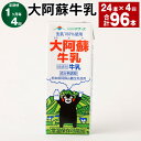 太陽と緑にめぐまれた酪農地帯「熊本」。 その豊かな自然の中で育まれた乳牛からまごころ込めて搾った生乳をパック詰めしたロングライフの成分無調整牛乳。【ふるさと納税】【定期便】【1ヶ月毎4回】大阿蘇牛乳 計96本(24本×4回) 1本あたり200ml 紙パック 生乳100% 牛乳 乳飲料 乳性飲料 成分無調整 くまモン ミルク 飲料 九州 熊本県産 国産 熊本県 高森町 送料無料