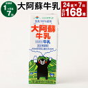 太陽と緑にめぐまれた酪農地帯「熊本」。 その豊かな自然の中で育まれた乳牛からまごころ込めて搾った生乳をパック詰めしたロングライフの成分無調整牛乳。【ふるさと納税】【定期便】【1ヶ月毎7回】大阿蘇牛乳 計168本(24本×7回) 1本あたり200ml 紙パック 生乳100% 牛乳 乳飲料 乳性飲料 成分無調整 くまモン ミルク 飲料 九州 熊本県産 国産 熊本県 高森町 送料無料