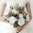 ウェディング ブーケ 結婚式 ブーケ 造花 手作り ドライフラワー ブートニア 花束おしゃれ ウエディング ブーケ 結婚式 白いバラのウエディングブーケ ミックス グリーン クラッチブーケ リボン アーティフィシャルフラワー 造花 シルクフラワー ガール 花束 フラワー ギフト インテリア おじゃれ ナチュラル