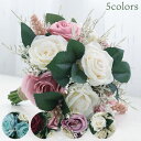 ウェディング ブーケ 結婚式 カラーユリケ 造花 手作り ドライフラワー ブートニア 花束 ガール 花束 フラワー ギフト インテリア おじゃれウェディングブーケ ブーケ [楽天ランキング受賞商品] 結婚式 保存が利き、軽くて扱いやすいので、リゾートや海外挙式、ロケフォトなど、何回でも使えるアーティフィシャルフラワー トスブーケ ラウンド型 造花 アレンジメント クラッチ バラ ラナンキュラス グリーン