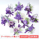 ブートニア リアル 造花 ブライダル ブーケ ウェディングブーケ アクセサリー 前準備 新郎準備 結婚準備 結婚式準備紫系 白 ブートニア リストバンド 単品と選べるブーケ同時購入で半額& ブートニア 新郎 チーフ 同時購入 ブーケ 造花 バラ ブーケ ブートニア セット パープル ホワイト バラ 葉っぱ ホワイト