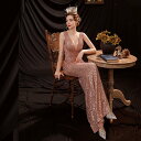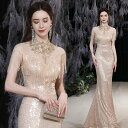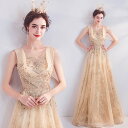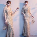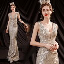 パーティー ドレス ロングドレス ワンピースウエディグドレス 二次会 花嫁 結婚式 発表会 演奏会 衣装 2L 3L 海外挙式 プラスサイズ 前撮りカラードレス ウエディング ロング 【着後レビュー特典】スパンコールがキラキラ美しい Vネック マーメイドライン ロングドレス ゴールド インポート ワンピース ウェディング ドレス XS S XL XXL XXXL 披露宴 刺繍 お色直し【cd-0380】