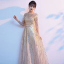 パーティー ドレス ロングドレス ワンピースウエディグドレス 二次会 花嫁 結婚式 発表会 演奏会 衣装 2L 3L 海外挙式 プラスサイズ 前撮り前撮りドレス カラードレス お色直し【着後レビュー特典】全体に施されたスパンコールがキラキラ輝く パフスリーブ Aライン パフ袖 ゴールド 金 ラウンドネック ロングドレス インポート ワンピース ウェディング ドレス XS S XL XXL XXXL 披露宴 刺繍【cd-0414】