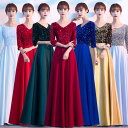 カラードレス オーダー ウエディング 二次会 細身え ドレス ワンピース 海外挙式 上品 綺麗 大きい 小さい XS XXL お色直し 謝恩会 パーティ ニ次会 花嫁 プレ花カラードレス 金 黒 緑 赤 グリーン【着後レビュー特典】【3カラー】輝く生地のパーティードレス 金 黒 緑 赤 グリーン レッド 結婚式 花嫁 ドレス カジュアル シルク調 シンプル インポート Vネック 5分袖 袖有 大きいサイズ ブライダル パーティ 発表会【cd-308】