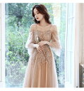 パーティー ドレス ロングドレス ワンピースウエディグドレス 二次会 花嫁 結婚式 発表会 演奏会 衣装 2L 3L 海外挙式 プラスサイズ 前撮り前撮りドレス カラードレス ウェディングドレス 【着後レビュー特典】オフショルダー細いストラップ ピンクベージュ Aラインロングドレス 透け感 長袖 カラードレス チュール インポート ワンピース ウェディング ドレス XS S XL XXL XXXL 披露宴 刺繍 床付き【cd-0528】