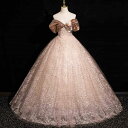 パーティー ドレス ロングドレス ワンピースウエディグドレス 二次会 花嫁 結婚式 発表会 演奏会 衣装 2L 3L 海外挙式 前撮り ステージ衣装カラードレス ピンク ウェディングドレス ロング お色直し【着後レビュー特典】バックレースアップが可愛くキラキラ輝くオープンショルダー ピンクゴールド Aラインドレス チュール インポート ワンピース ウェディング ドレス XS S XL XXL XXXL 披露宴 刺繍【cd-0347】