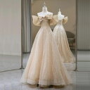 前撮り 後撮り 二次会 謝恩会 フォトウエディング 披露宴ドレス 花嫁ドレス お色直し きれいめ 上品 おしゃれ きれいめ 主役級 存在感 無地 20代 30代 レディース パーティーウェディングドレス 星 スター スパンコール かわいい 前撮り カラードレス ウェディングワンピース おしゃれ チュール 透け感 結婚式ドレス イエロー ベージュ パフスリーブ 花嫁ドレス ロングドレス 袖あり 5分袖 五分袖 シフォン かわいい 大人可愛い 【wdm-1132】