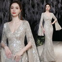 パーティー ドレス ロングドレス ワンピースウエディグドレス 二次会 花嫁 結婚式 発表会 演奏会 衣装 2L 3L 海外挙式 プラスサイズ 前撮りカラードレス ワンピース ウェディングドレス ロング 前撮りドレス【着後レビュー特典】輝く生地に目を引かれるマントスリーブのスタイルアップロングドレス Vネック スパンコール インポート ワンピース ウェディング ドレス XS S XL XXL XXXL 披露宴 刺繍