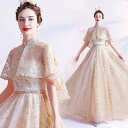 前撮り 後撮り 二次会 謝恩会 フォトウエディング 披露宴ドレス 花嫁ドレス お色直し きれいめ 上品 おしゃれ きれいめ 主役級 存在感 無地 20代 30代 レディース パーティーウェディングドレス カラードレス 前撮り ハイネック スパンコール ベージュ ゴールド 半袖 シャンデリア 豪華 装飾 キラキラ 二次会ドレス 披露宴ドレス 花嫁 ロング丈 チュール シフォン 襟なし Aライン 大人可愛い おしゃれ エレガント ゴージャス 華やか 【wdm-1157】