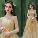 床付き 編み上げ パーティー ドレス ロングドレス ワンピースウエディグドレス 二次会 花嫁 結婚式 発表会 演奏会 衣装 2L 3L 海外挙式 プラスサイズ 前撮り前撮りドレス カラードレス ウェディングドレス ゴールド【着後レビュー特典】キラキラ輝く素材が ゴージャスな Aラインフリル くすみイエロー ロングドレス 多層式 チュール シンプル 編み上げ ハートカット キャミドレス ワンピース XXL XXXL 披露宴【cd-0440】