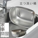 立てて水切りできる衛生的なオールステンレス洗い桶家事問屋 立つ洗い桶【つけ置き洗い 野菜洗い 食器洗い シンク おけ スタンド付き】