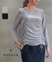【送料無料】【国内正規品】【マラソン期間中ポイント10倍】ププラ PUPULA カットソー ロンT 長袖 Tシャツ プルオーバー トップス ベロア 薄手 シアー クルーネック シャーリング インナー 黒 グレー 上品 日本製・346091-0142402(レディース)