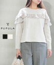 【送料無料】【国内正規品】【マラソン期間中ポイント10倍】【2025年秋冬新作】ププラ PUPULA カットソー トップス プルオーバー 長袖 フリル クルーネック 上品 フェミニン きれいめ おしゃれ・346202-0142502(レディース)