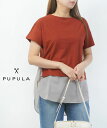 【送料無料】【国内正規品】【マラソン期間中ポイント10倍】ププラ PUPULA コットンリネンツイル 半袖 裾切替え レイヤードライク カットソー Tシャツ outlet ・197211-0141902(レディース)