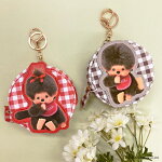 公式 公認 モンチッチ ポーチ コインケース かわいい レトロ 昭和レトロ モンチッチくん モンチッチちゃん ギンガムチェック ブラウン 赤 レディース プレゼント 丸型ポーチ 新学期 通学 セキグチ