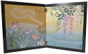 トールペイントご自分で描く図案付白木素材キット 2曲屏風(大) あやめに藤 cwk-245 丁番2ヶビス付き 季節を描いた小ぶりの屏風。