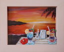 二枚重ねのペイントアート後ろのシナ合板と前のアクリル板に描く奥行を持たせた二枚重ねのペイントアート cwk-1401 サンセットビーチとドリンク