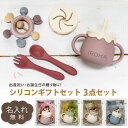大切な人への出産祝い、お誕生日に。【名入れ対応】ベビーシリコン食器セット ギフトセット 3点 3WAYマグ スプーン&フォーク 歯がため ピンク グリーン ベージュ ブルー 春夏秋冬 出産祝い 誕生日 お祝い
