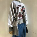 リメイク プリントスウェット グレー ネイビー77circa / 77サーカ circa make different length wide sweat top