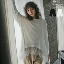 ふんわりタッチが心地よいランダムヘムチュニック≪1月21日発売≫M/Lサイズ [2026S/S COLLECTION]リブニットソーランダムレースヘムチュニック レディース 春 リエディトップス Tシャツ カットソー レース チュニック ニットソー ロンT ランダムヘム 体型カバー