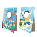 夏休みにあそべる ダンボール製顔出しパネル顔出しパネル2枚セット 海水浴 ダンボール製イーゼル付 顔ハメ