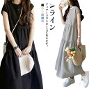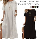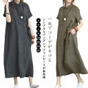 ワンピース 綿麻風ワンピース レディース 半袖 クルーネック シンプル 大人 可愛い 春夏ワンピース レディース 半袖 シャツワンピース クルーネック ミモレ丈 ワンピ 無地 夏 ロングワンピ Aライン サマーワンピース シンプル 大人 可愛い ナチュラル きれいめ カジュアル