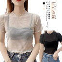 トップス 半袖 レディース シースルー シアー インナー 春夏 おしゃれ 上品 透け プルオーバー モックネック 薄手 重ね着 メロウフリル フリルネックシアートップス レース 半袖 シアー トップス 透け感 プチハイネック 2タイプ選べる レディース フリル ショート丈 レイヤード インナー 薄手 きれいめ シアートップス レース プルオーバー モックネック 薄手 重ね着 UV対策 紫外線対策 シースルー トップス チュール