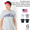 ★定番人気のブルックリンロゴに星条旗刺繍ワッペンが袖に付いたヘビロテTシャツ★\お得なクーポン配布中/【メール便 送料無料】ロゴ Tシャツ メンズ レディース お揃い ペアルック 半袖 父の日 ギフト Tシャツ ブルックリン ロゴ 袖 星条旗 刺繍 ワッペン アメカジ ロゴ Brooklyn プリントカジュアル ストリート ギフト プレゼント