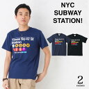 ★ヘルベチカフォントがナイスでカラフルな1枚★\お得なクーポン配布中/【メール便 送料無料】ニューヨークシティ (NYC) 地下鉄 プリントTシャツ 半袖 メンズ レディース お揃い ペアルック Times Square-42 Street Station タイムズスクウェア カジュアル ストリート コットン ギフト プレゼント