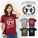 ★伝統的な王冠とライオンがアースカラーにマッチしたヘビロテTシャツ★\お得なクーポン配布中/【メール便 送料無料】オーセンティック プリントTシャツ 半袖 GRACIOUS GROUND AUTHENTIC メンズ レディース お揃い ペアルック カジュアル ストリート コットン 母の日 父の日 ギフト プレゼント
