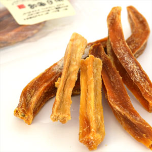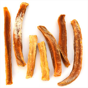 鉄分が多く、水はけがよい、土壌菌の少ない赤土で作られた国産さつまいもで作った無添加無着色の大人気のおやつです。アキレスのようにとても硬いので噛み応えがあり、噛むことが大好きなパートナー(愛 犬)の本能を満たします。