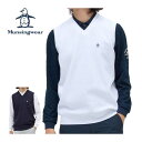 Munsingwear GOLFおすすめ アパレル ウエア 洋服男性 トップス 手洗い可 スポーティ ロゴグラフィック 重ね着背面ロゴ ソフト 軽量 レギュラーシルエット ホワイト 白 紺マンシングウェア 地柄 Vネック ニットベスト ゴルフウェア メンズ 2025年秋冬モデル M-LL MG5FVE80M [即納]