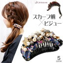 ヘアクリップ ヘアアクセ ヘアアクセサリー スカーフ柄×ビジューの大人可愛いヘアクリップ【ヘアクリップ】★キュエーマ[バナナクリップ テールクリップ パール ビジュー クリスタル ゴールド リーフ スカーフ柄 ゴージャス カジュアル ヘアアレンジ ヘアアクセサリー 髪飾り]20180918