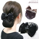 ロングさんも安心。シニヨンネット付きバレッタ。簡単3ステップでできる、きっちりまとめ髪お仕事シーンから、ブラックフォーマル・シーンに大活躍!【バレッタ】★リュクス[就活 オフィス 会社 仕事 リボン 黒 ブラック フォーマル 冠婚葬祭 お団子ネット シニョンネット ヘアアクセサリー シニョンバレッタ ヘアアレンジ まとめ髪 人気50]