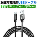 急速充電対応Type-C iPhone Micro-USB 充電ケーブル急速充電対応Type-C /iPhone / Micro-USB ケーブル 1m 仕様選択可能 android端末用ケーブル iOS用ケーブル Type-C スマホ ケーブル 断線しにくい 頑丈 急速充電 絡まない 長い 充電ケーブル