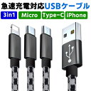 急速充電対応Type-C iPhone Micro-USB 充電ケーブル3in1 急速充電対応 Type-C /iPhone / Micro-USB ケーブル 1.2m android端末用ケーブル iOS用ケーブル Type-C スマホ ケーブル 断線しにくい 頑丈 急速充電 絡まない 長い 充電ケーブル