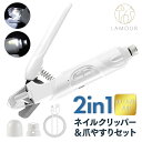 爪切りと爪やすりが一つになったネイルケアアイテム♪ラムール 2in1 ネイルクリッパー&爪やすりセット 猫・小型犬用 ペット 犬 猫 小動物 爪切り 電動 爪やすり 深爪防止 ライト 爪飛び散り防止 コンパクト LAMOUR
