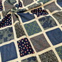 インド綿のパッチワーク生地♪花柄がかわいい【50cm単位】【1.5mまでメール便対応】コットン 花柄 先染め 生地 パッチワーク レース 青 ブルー 紺 ネイビー 緑 グリーン エスニック