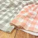 ワッシャー加工のダブルガーゼ【50cm単位】【宅配便のみ】 ダブルガーゼ サーモンピンク グレー チェック 国産 日本製 コットン 綿 生地 ハンドメイド