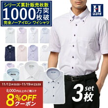 | 【クーポン配信中!】半袖アイシャツ 日本製生地使用【完全ノーアイロン】時短 半袖ワイシャツ【専門店品質】【夏のビジネスに最適】形態安定 Yシャツ カッターシャツ【3枚福袋】 ストレッチ 標準体 ノーアイロン ボタンダウン セミワイド ワイシャツ はるやま 送料無料