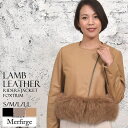 レザージャケットにありがちなハードなイメージを払拭した女性らしいデザインのファー付きライダースジャケット ミセス 通勤 カジュアル プレゼント ギフト【50%OFFクーポン】ライダースジャケット[Merfirge]ラム レザー フォックス ファー付 レザージャケットブルゾン コート アウター 本革 羊革 ノーカラー ライダース リアルレザー (kt7007)