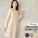 柔らかなレザーにドットをパンチングした上品でクールなコート アウター ブルゾン 通勤 カジュアル 軽量 おしゃれ【17%OFFクーポン】本革 ラム レザー パンチング ノーカラー コート [Merfirge]パンチングレザー ドット柄 レディース ジャケット 秋 冬 春 ノーカラー 襟なし (kt8021)