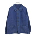 モールスキン20250960年代 フランス製 Canals モールスキン フレンチワークジャケット ヴィンテージ ユーロ ブルー(メンズ S相当)中古 古着 V1422