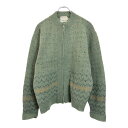 古着60年代 Sears シアーズ フルジップ ウールニットセーター ヴィンテージ 総柄 グリーン(メンズ L)中古 古着 V1874