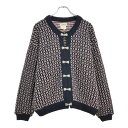 古着80年代 西ドイツ製 MAREMMA 3Dニットカーディガン ユーロ 総柄 ネイビー(メンズ 52)中古 古着 V6633