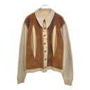 古着70年代 BRENT スエードレザー アクリルニットカーディガン ヴィンテージ ブラウン(メンズ L)中古 古着 V1819