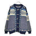 古着90年代 ノルウェー製 nordstrikk ノードストリック チロリアンニットカーディガン ユーロ 総柄 ブルー(メンズ L)中古 古着 V1858